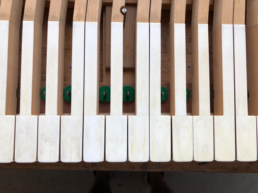 Der Hammerkopf spielt sich mit der Zeit ein und verliert an Spannung, was eine gleichmäßige Intonation unmöglich macht. Deshalb sollte der Hammerkopf auch nach ca. 30-40 Jahren ausgetauscht werden. Bei diesem Bechstein Konzertklavier wurden die alten Hammerköpfe durch neue, originale Bechstein-Hammerköpfe ersetzt. Vorab wurden die Hammerköpfe vorintoniert und abgezogen.